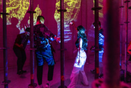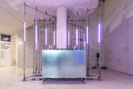 Featuring a DJ set and performance by Luxembourg-born transmedia artist Dancedivine, whose practice includes a variety of sonic forms from techno to break-beat and politically motivated vocals, the intervention was composed by different objects fluctuating in the monumental space of the museum: a bar, a stage, a podium.