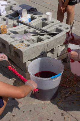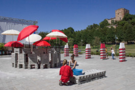 Against the immortality of roman temples, we made a structure we could dismantle and rebuild in a couple of days on the other side of europe (the temple “moved” to Oostende, Belgium), by renting and assembling generic elements that define the infrastructures of our cities and landscapes. In such way, Venustas was found in making domestic those invisible and rough elements, Firmitas in using elements defined by standards, Utilitas in ephemerality, in giving room to new rituals, habits, that were kept out of our liturgies and traditions, temples and altars for a little bit too long.